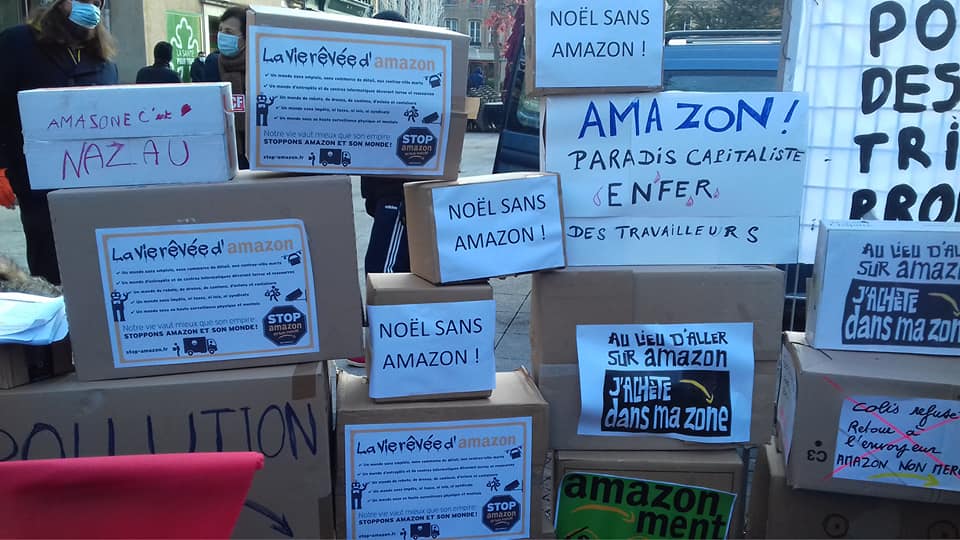 Soutenez le commerce de proximité, engagez-vous à ne pas recourir à la plateforme Amazon pendant la période de Noël. Voilà l’appel que les communistes lancent à travers tout le pays !