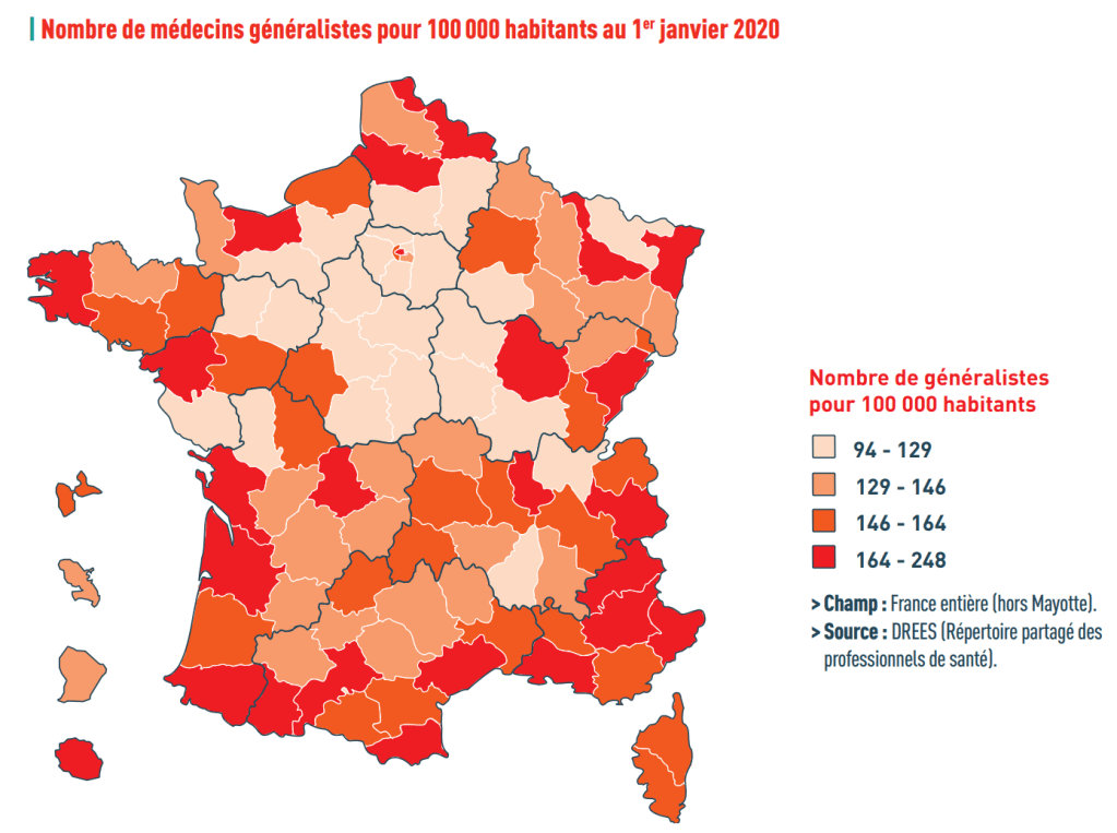 L’Association des maires de France (AMF) et la Mutualité française viennent de publier leur tout premier Baromètre santé-social. Une enquête qui étudie l’accès aux soins en France. Celle-ci dénombre, en 2019, « en moyenne 151 médecins généralistes pour 100 00 habitants ». La Moselle, hélas, n’entre pas dans cette moyenne. Elle figure même parmi les 14 départements les moins bien classés, avec un score oscillant entre 94 et 129 praticiens pour 100 000 habitants. La Meurthe-et-Moselle s’en sort nettement mieux, puisqu’elle apparaît parmi les territoires les plus pourvus : entre 164 et 248 médecins généralistes pour 100 000 habitants. Autre signal inquiétant : la proportion de généralistes de plus de 60 ans varie de 37 à 47 % en Moselle.