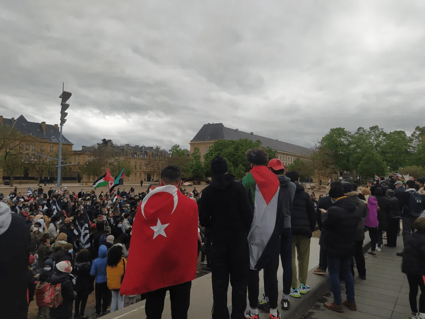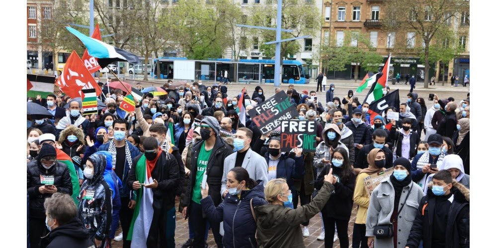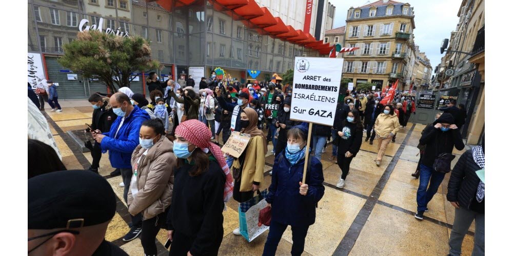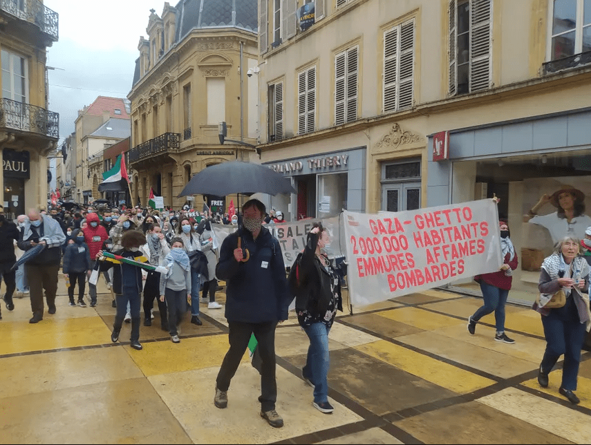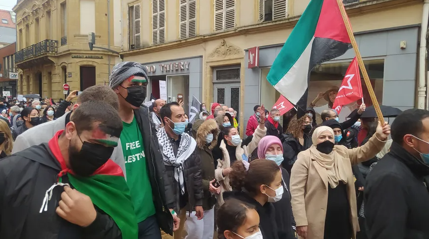 Le 15 mai 2021, les communistes de Moselle étaient présents pour manifester leur solidarité avec le peuple palestinien à Metz, à l’appel de l’association France-Palestine Solidarité / ©Radio France, Natacha Kadur et © Républicain lorrain, Maury Golini