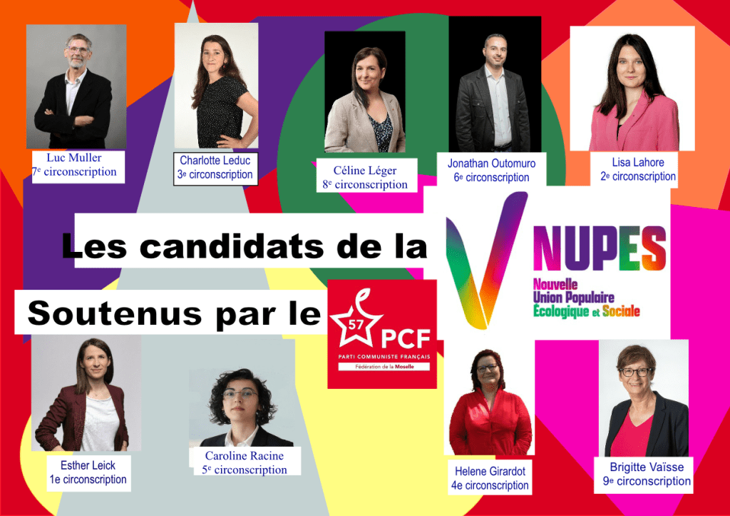En Moselle, cet accord se traduit par la présence d’une candidate titulaire du PCF, Hélène GIRARDOT. Nous partageons pleinement l’objectif de la NUPES de faire élire un maximum de député.e.s de gauche et écologistes sur un programme résolument ancré à gauche et radicalement tourné vers la transition écologique, avec parmi eux un groupe communiste à l’Assemblée Nationale. Nous appelons donc à voter pour les 9 candidat.e.s investi.e.s par la NUPES en Moselle.