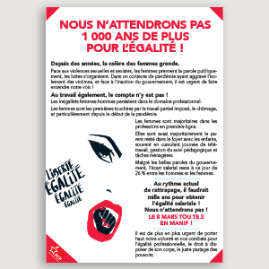 Nous n’attendrons pas 1 000 ans de plus pour l’égalité ! / Tract PCF, mars 2021
