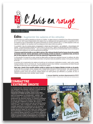 Après plus de 20 années d’absence, le journal des communistes de Moselle (L’Avis en rouge), écrit une nouvelle page de son histoire grâce à une équipe de bénévoles impliqués. Retrouvez-le sur cette page, ainsi que d’autres publications utiles. Bonne lecture !